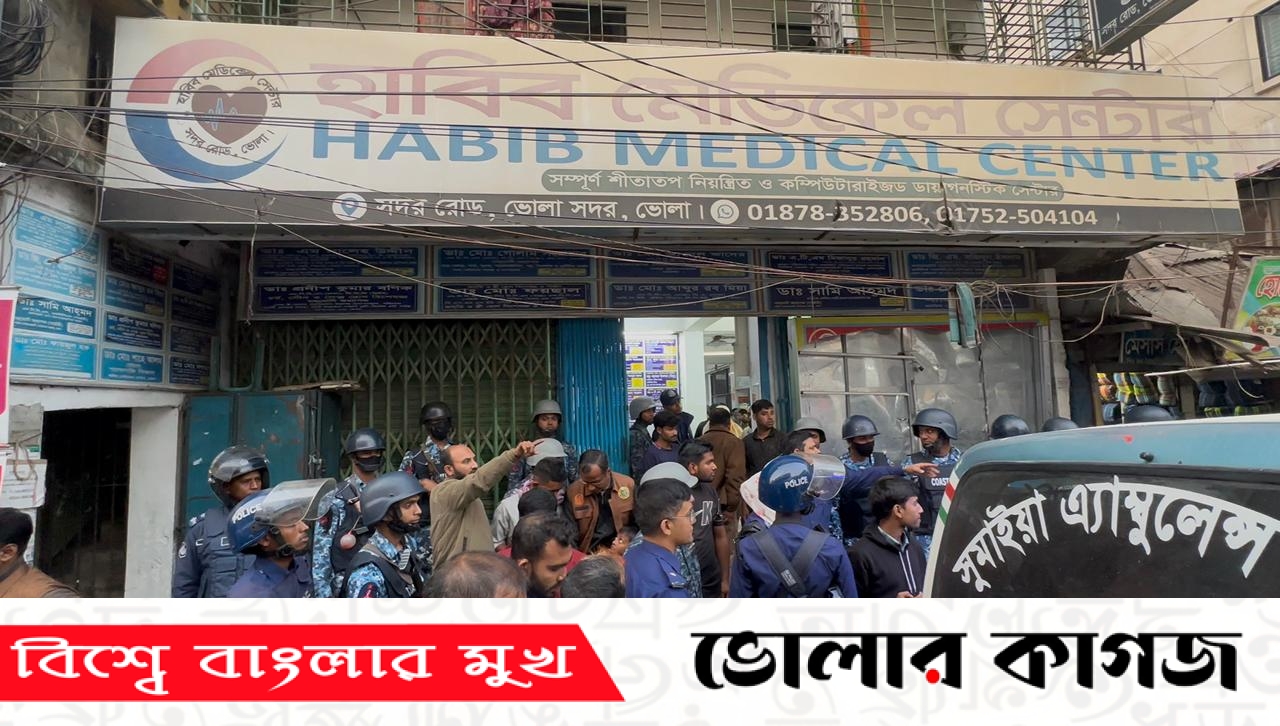 সোমবার (০২ ফেব্রুয়ারি) বিকেল সাড়ে ৪টার দিকে ভোলা সদর রোডের হাবিব ডায়াগনস্টিক অ্যান্ড ক্লিনিক সেন্টারে এ ঘটনা ঘটে।